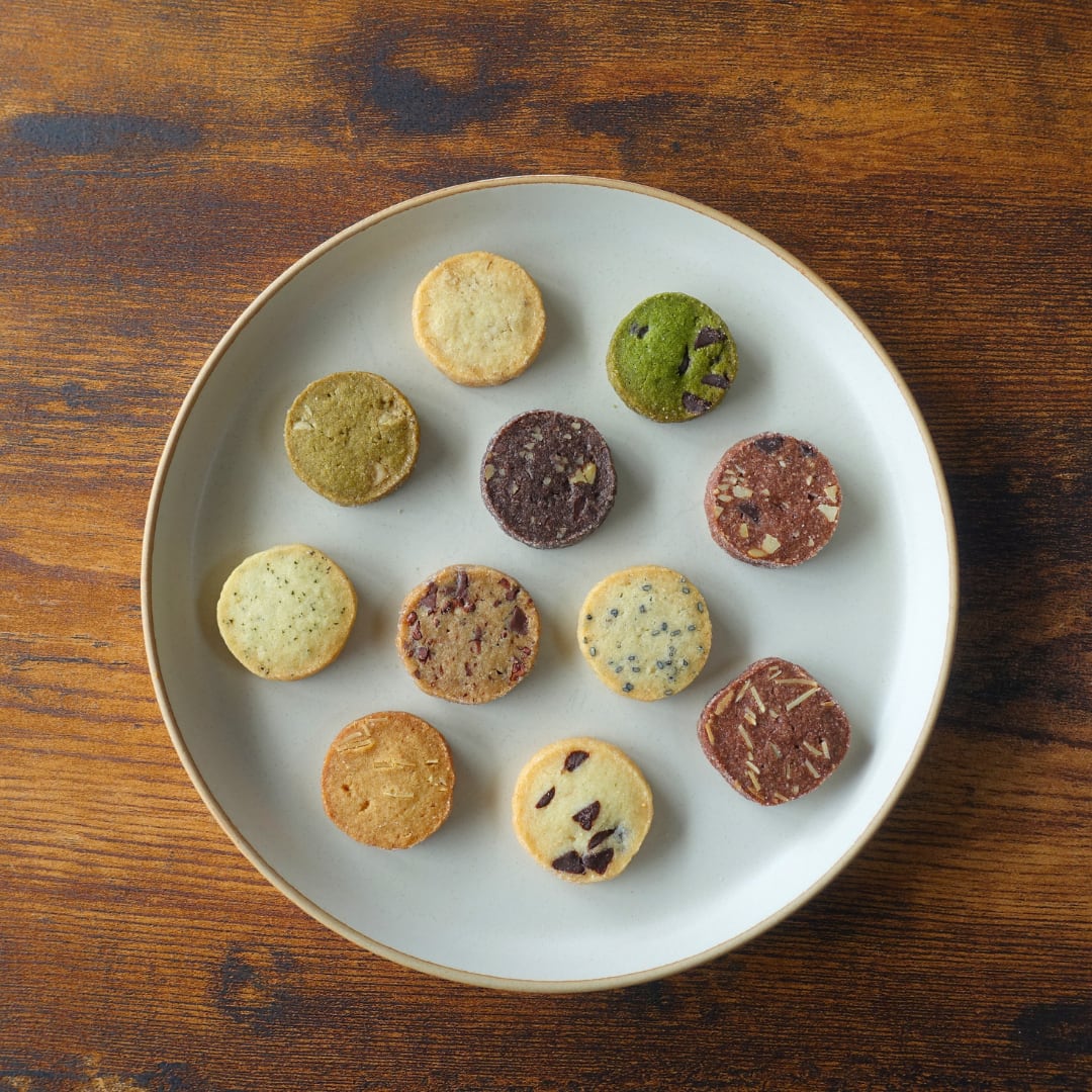 ・ディアマンクッキー(紅茶、黒ごまきな粉、抹茶チョコ、チョコチップ、ブラックくるみチョコ、ココアアーモンド、くるみ、バニラ、チョコココアヘーゼル、ほうじ茶ホワイトチョコ、カフェモカ、キャラメルアーモンド、オレンジチョコ)